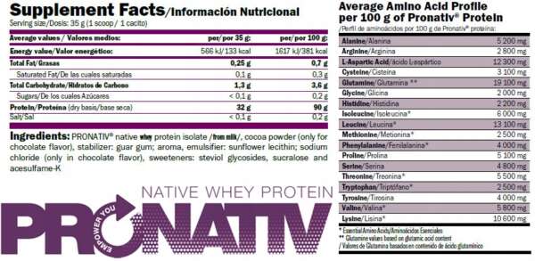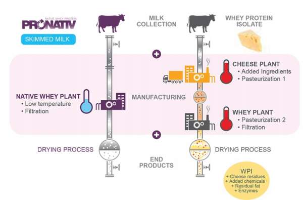 Компанія Pronativ® розробила нову інноваційну технологію, що дозволяє екстрагувати нативний сироватковий білок безпосередньо з молока за допомогою мікро- та ультрафільтрації низьких температур. Пронатив® природнім чином багатий незамінними амінокислотами, які не можуть бути синтезовані організмом, у тому числі на 15% більше лейцину, ніж у традиційних ІПС. Пронатив® краще всмоктується кишечником